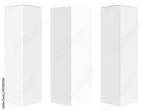 Fototapeta - Three tall, white rectangular columns are standing vertically in a row.