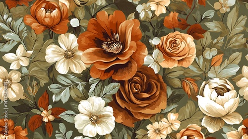 Fototapeta - Autumnal Floral Seamless Pattern.