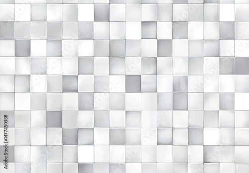 Fototapeta - Abstract pattern of square tiles in varying shades of gray and white. The squares are tightly packed together, creating a textured surface
