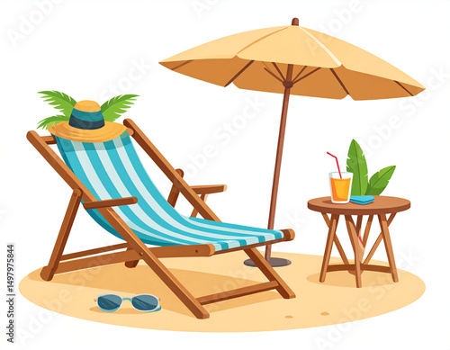Fototapeta - Wakacje leżak drink i parasol ilustracja