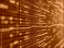 Luminous trend lines over binary digital background, glowing data visualization, futuristic technology, abstract, blue, orange, dynamic