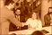 An executive standing at boardroom and congratulating businesswoman on a success in front of team of experts.