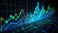Dynamic blue and green digital stock market graph with bar charts and lines on a dark background, representing financial data analysis, investment trends, business growth, and global economy fluctuat