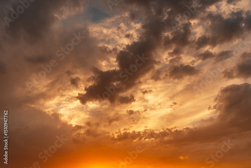 Fototapeta - Beautiful bright sunset evening sky with dramatic clouds.