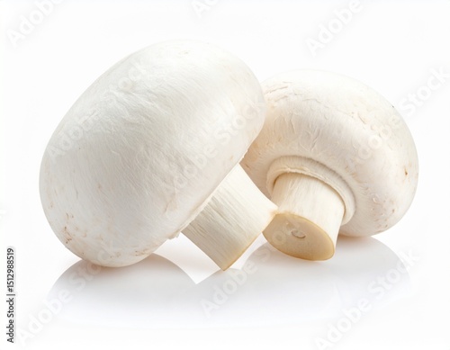 Whole white button mushroom with stem isolated on white background
