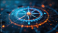 Fototapeta - Digital compass with glowing lines, particles. Tech concept, navigation, direction visualization. North, east, south, west directions, futuristic design. Abstract illustration, modern tech innovation.