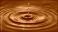 Water drop creates ripples in a blue liquid surface with golden reflections.