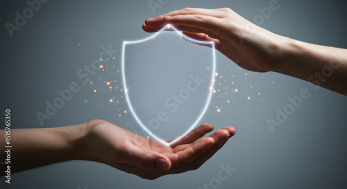 Protective hands shielding a digital security icon online security awareness conceptual image studio lighting close-up view cyber safety
