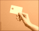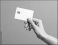 Close up female hand holds levitating template mockup Bank credit card with online service isolated on purple background