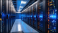 Fototapeta - Server Room in Data Center: A high-tech server room illuminated with blue lights, showcasing rows of powerful servers, servers racks, and advanced IT equipment that drive our digital world.