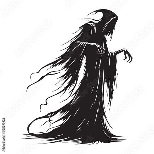 Menacing Wraith ghost figure silhouette - wraith silhouette - wraith vector - silhouette of wraith - phantom monster graphic