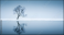 Leafless tree with reflection on a still icy lake under moody blue lighting symbolizing silence and introspective solitude