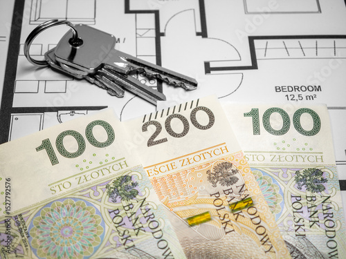 Fototapeta - Rynek nieruchomości, projekt ukladu nowego mieszkania od dewelopera