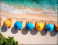 Fototapeta - Widok z góry na leżaki i parasole na piaszczystej plaży