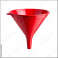 A bright red plastic funnel with a wide top and narrow spout, designed for easy pouring and transferring of liquids or powders.