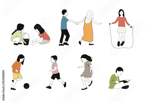 Fototapeta - Children playing – elevation view – 2D – colorful illustration isolated on transparent background