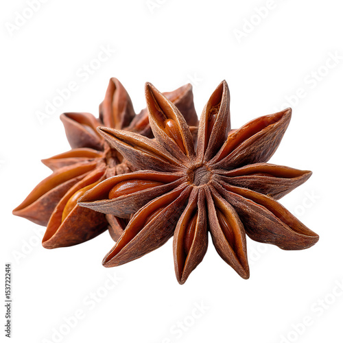 Two star anise spices close up on a dark background