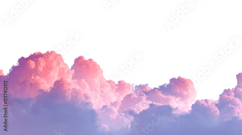 Fluffy pink and purple clouds against a dark area in a dreamy sky aesthetic illustration on transparent background