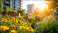Urban garden buzzing with activity as bees pollinate flowers amidst the city , the growing trend of beekeeping in urban environments