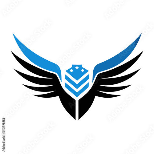 Fototapeta - Abstract blue wings logo with geometric center