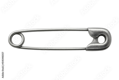 >Naklejka na meble>Metal safety pin securely fastening fabric, clasping tightly against white background, highlighting practical utility and minimalist design