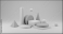 Geometric shapes composition featuring cylinders spheres cones cubes and disks in neutral colors