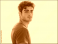 Portrait of a handsome young man with curly hair looking back
