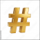 A shiny, golden hashtag symbol isolated against a clean white background.