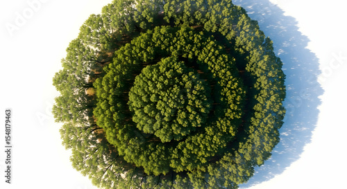 Fototapeta - Aerial Perspective Of A Green Forest Arranged In A Concentric Pattern