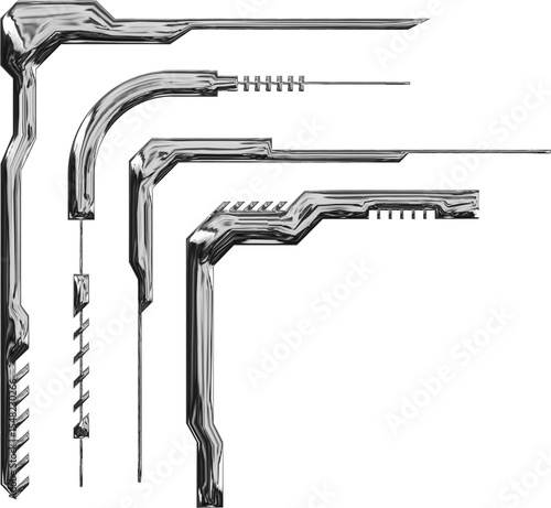 Fototapeta - Marco metallico. Metal liquido. 3d chrome metal organic fluid shapes and stars. Abstract liquid mercury metallic icon. 3d rendering aluminum gradient shape design. Diseño de formas abstractas. PNG