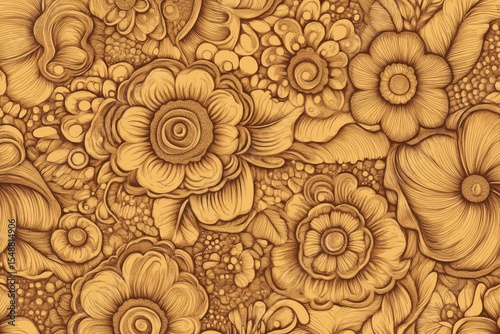 Floral pattern, intricate design, golden hues