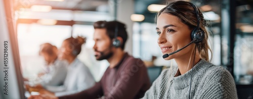 Fototapeta - The engaged call center team providing exceptional customer service at work.