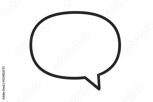 Black outline of a classic speech bubble symbol is displayed on a transparent background, representing communication and messaging