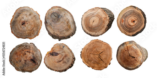 Various Wood Log Cross Sections on White Background, PNG set collection, isolated on transparent background
