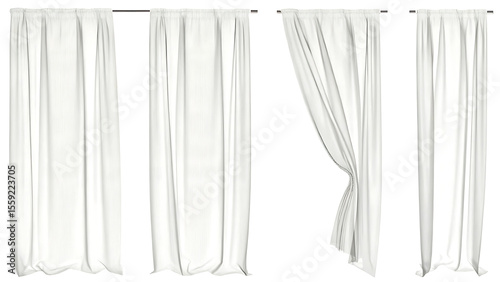 Fototapeta - white sheer curtains with different drapery semi isolated on white background PNG ,AI GENERATED
