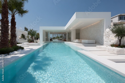 Bright white house modern with pool minimalist design view