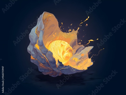 >Naklejka na meble>A radiant pearl within an oyster, symbolizing the beauty found within, set against a deep background of endless expanse. An artistic display of nature's hidden beauty, illuminated with golden light.