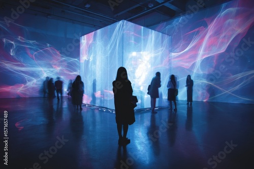 Fototapeta - Immersive interactive digital art installation engages visitors with vibrant projections and dynamic atmosphere in modern gallery space