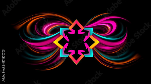 Abstract colorful swirling design with geometric center