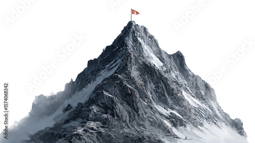 Fototapeta - Mountain peak with flag, 3d rendered, isolated on transparent background