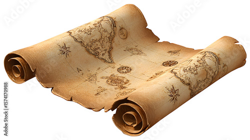 Fototapeta - Antique treasure map scroll, isolated on transparent background
