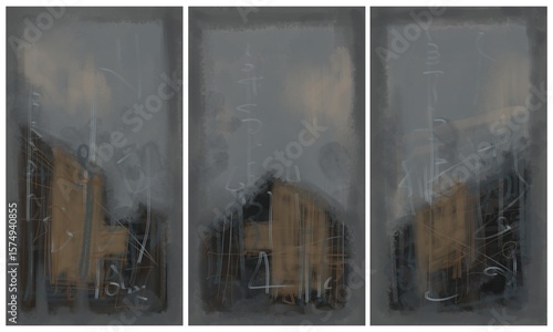 Fototapeta - Modern interior triptych. The picture is painted by hand on a tablet.