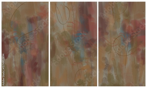 Fototapeta - Modern interior triptych. The picture is painted by hand on a tablet.