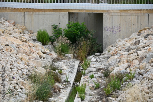 Fototapeta - kanał przeciwpowodziowy pusty z kamieniami