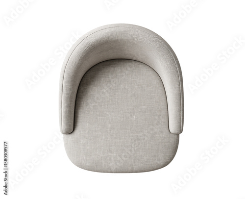 Fototapeta - top view of an armchair, light gray in color, with a rounded shape and straight edges, leather texture, minimalist style, against a white background, high resolution, high quality.,