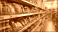 Supermarket food aisle with packaged goods and bright lighting for retail commerce background photography concept