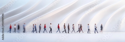 Fototapeta - Dynamic crowd in motion near modern art museum