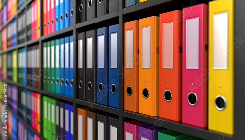 Fototapeta - Colorful Binders on Shelves in an Organized Office