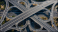 Complex highway interchange viewed from above, showcasing numerous curving roads and moving vehicles.