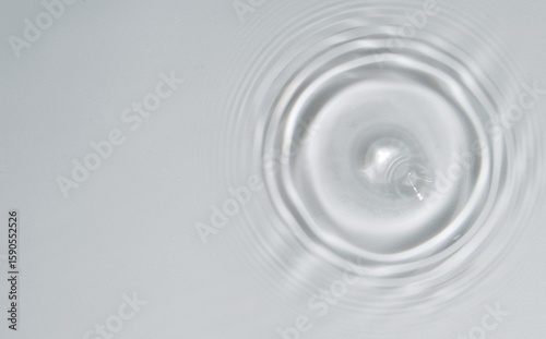 >Naklejka na meble>Water drop Ripple Flow sunlight top view transparent clear water white background. Circle wave water surface texture ripples, bubble, splashes.